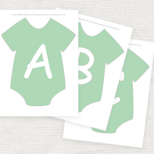 Mint green onesie alphabet banner - PRINTABLE FILE