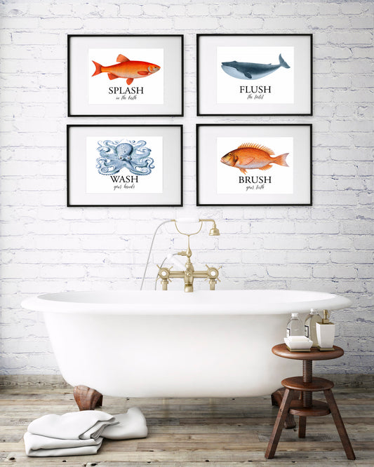 Vintage bathroom art print set