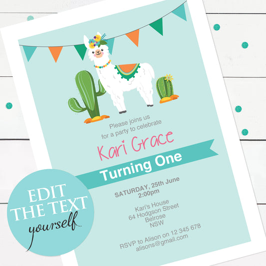 llama birthday or baby shower invite - INSTANT DOWNLOAD PDF