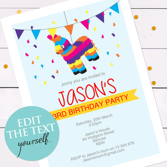pinata birthday or baby shower invite - INSTANT DOWNLOAD PDF