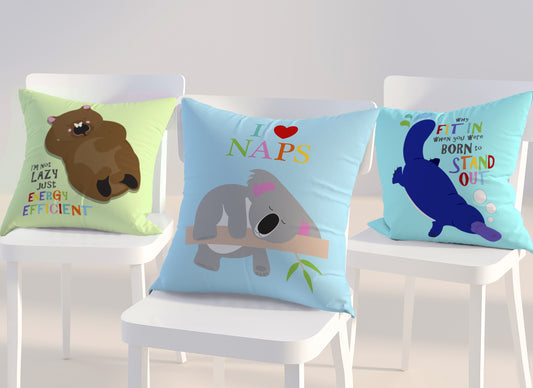 Discover our boutique decorative cushion covers, designed with love in Australia to add a pop of colour, style and personality to your home decor. Elevate your space with unique and fun cushions for the whole family.