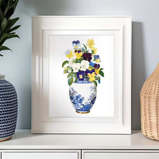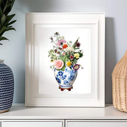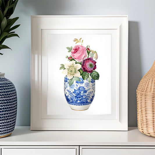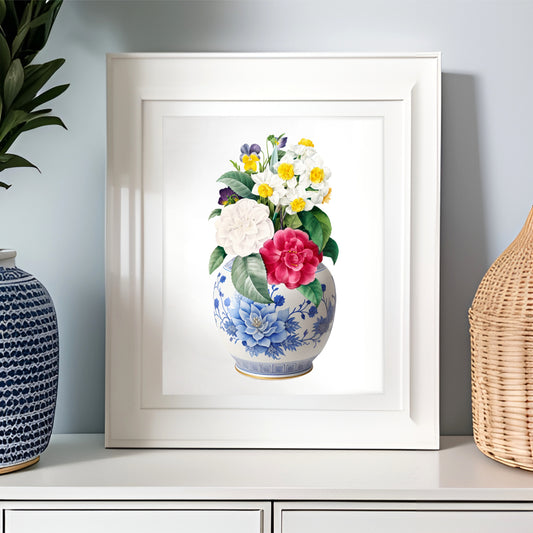 Ginger Jar with Pink & Yellow Bouquet Art Print