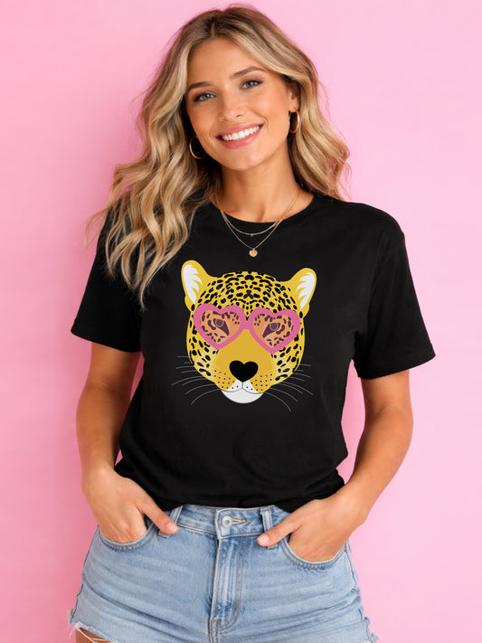 Leopard Heart Sunglasses Graphic Adult T Shirt – Heartbreaker Leopard