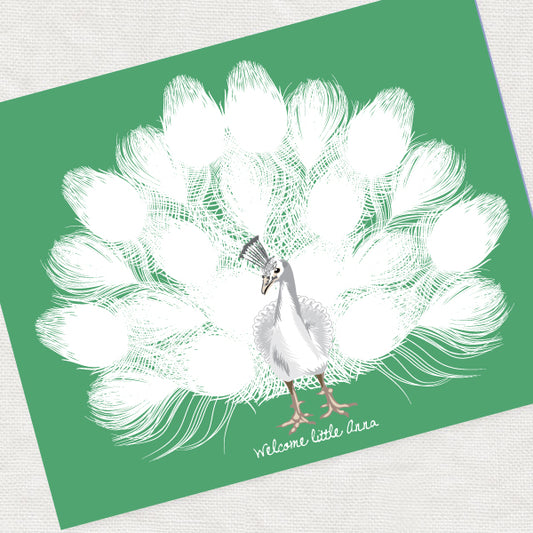 White Peacock Fingerprint Guest Book Alternative – Wedding & Baby Shower Poster