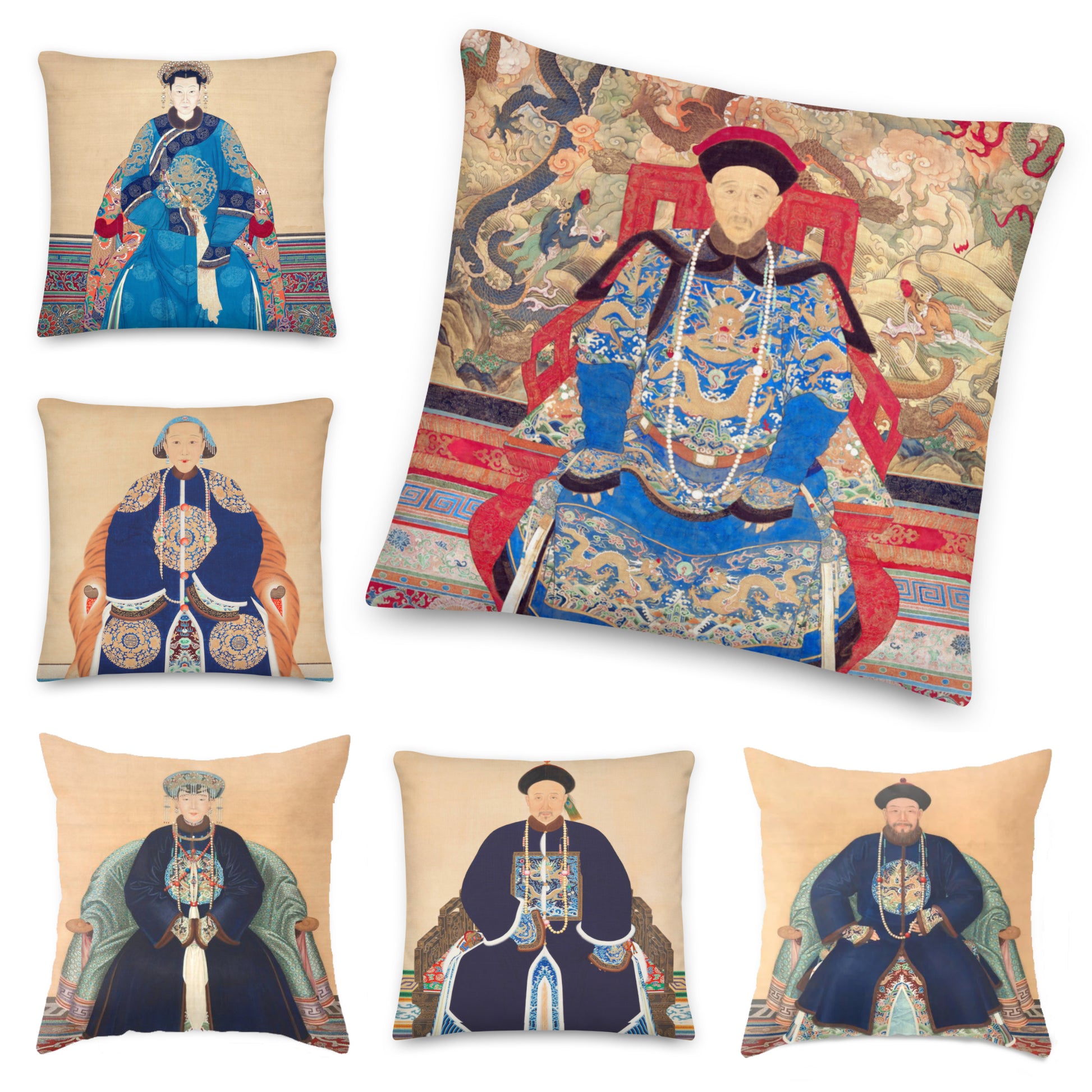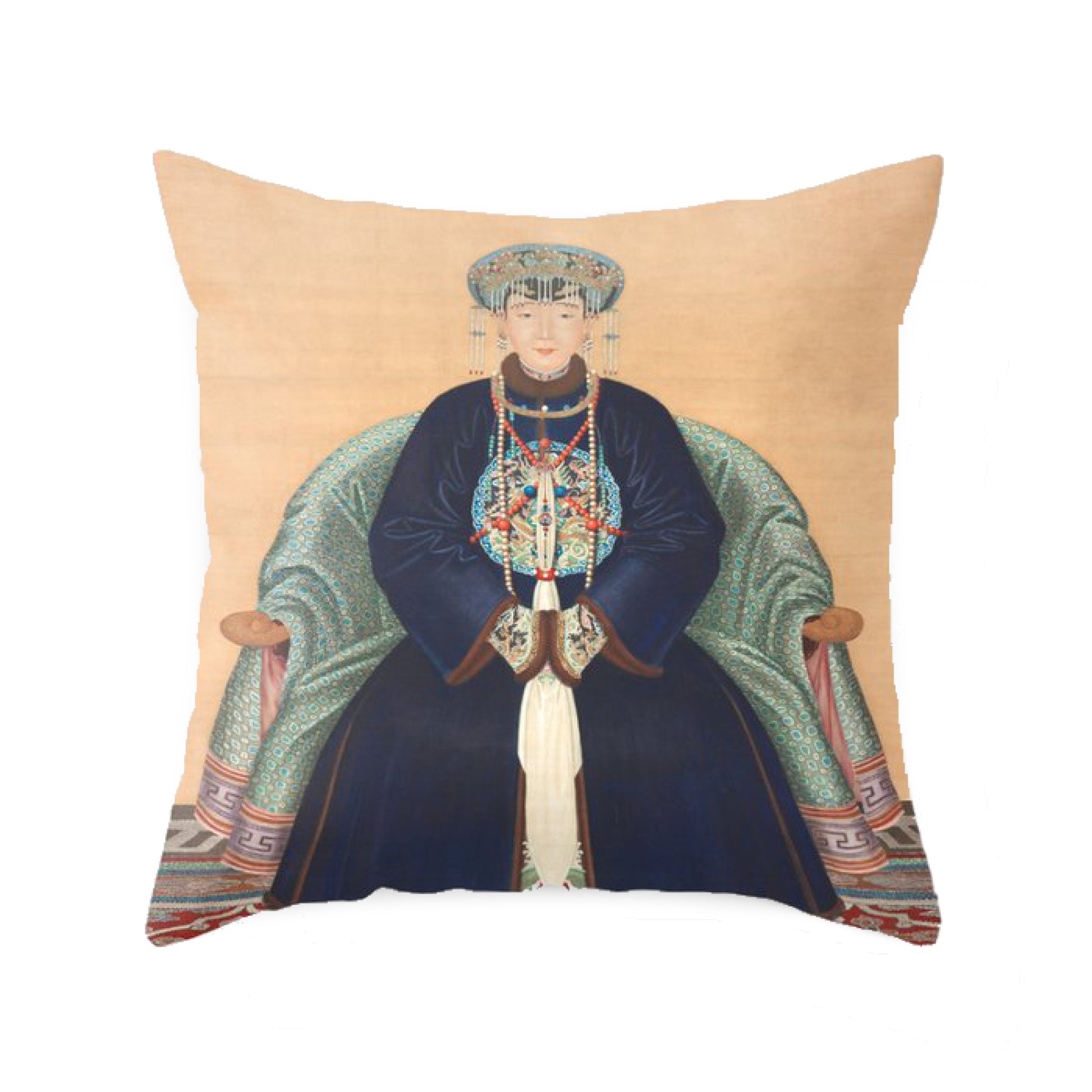 A Chinese ancestor portrait with stunning detail decorates this cushions cover adding a touch of elegance to any room in your home. The front of the cushion cover showcases the captivating artwork of the lady, while the back is black.