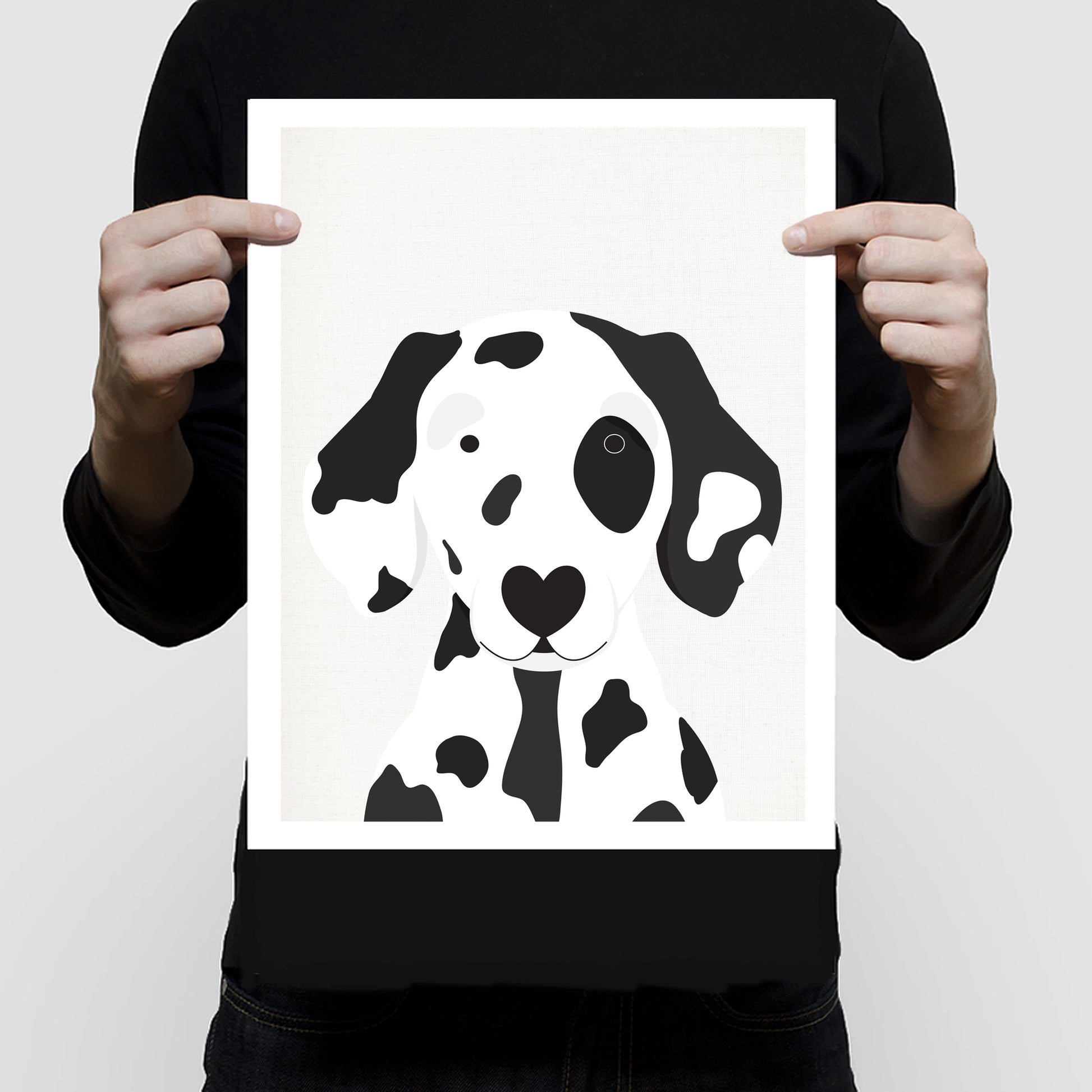 This friendly Dalmatian illustration is full of charm and perfect for a playful pop of monochrome in your space. Ideal for modern nurseries, dog themed décor, or as a thoughtful gift for Dalmatian lovers.