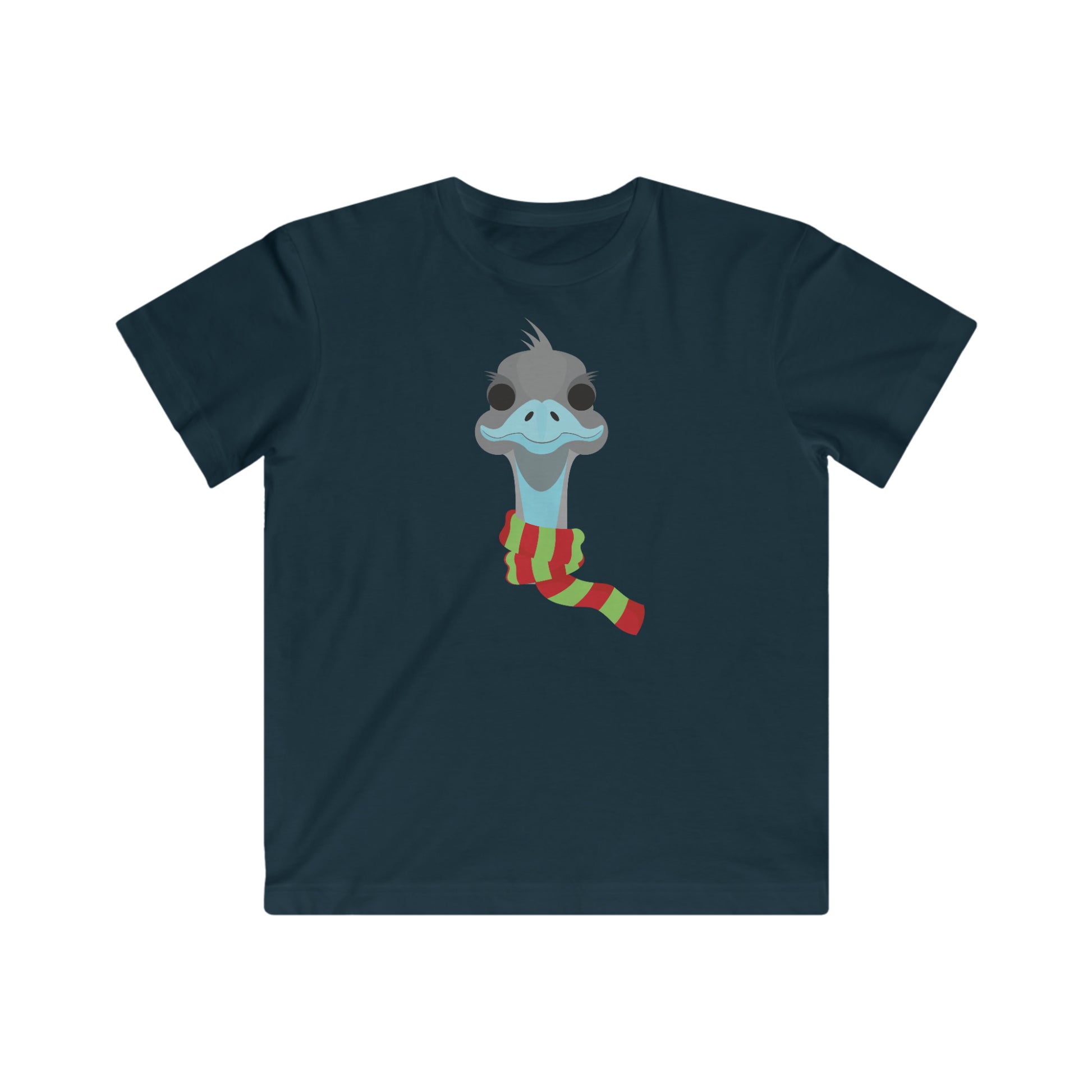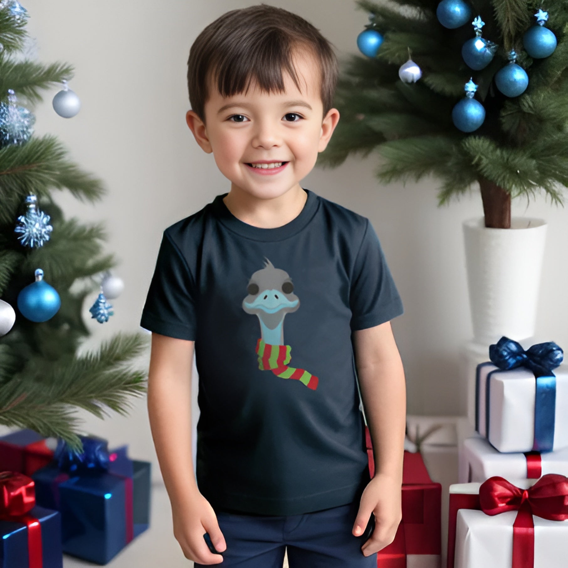 Embrace Aussie festivity in style with this cute dark navy blue emu Christmas t-shirt for kids. Featuring an emu dressed in his Christmas scarf. Crafted from soft cotton, this tee brings comfort and joy to your baby's first festive season and beyond.