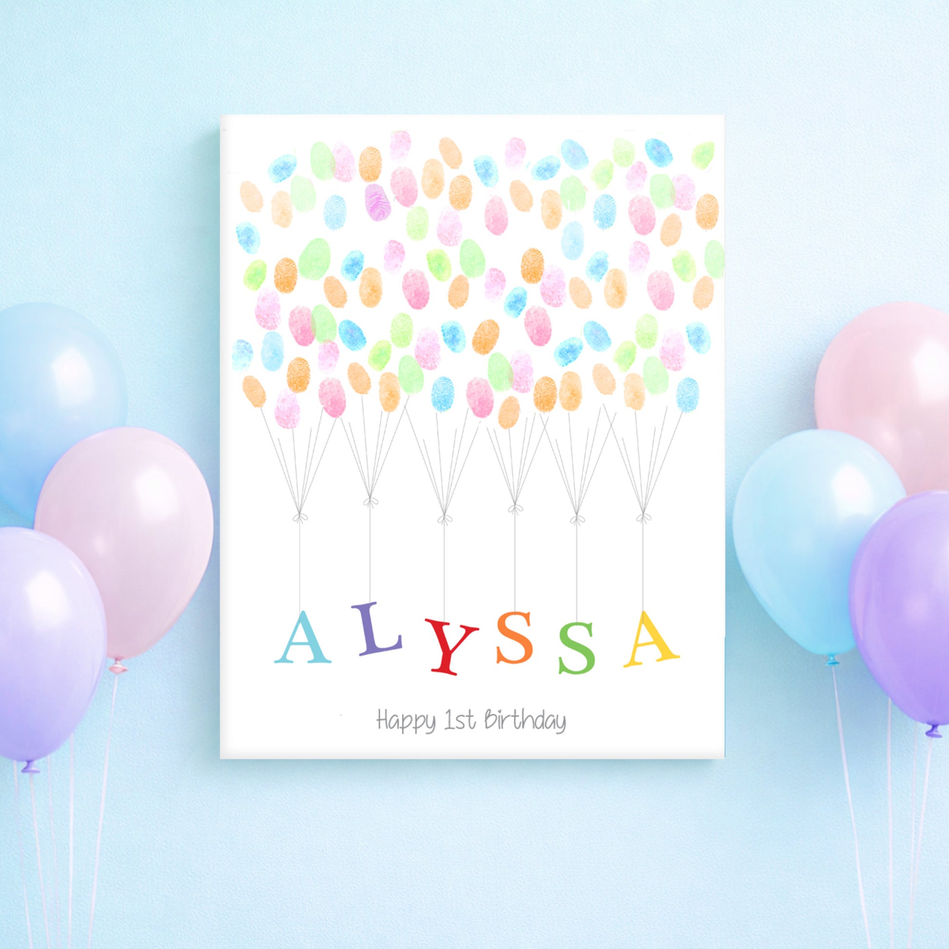 Name Balloon Fingerprint Guest Book Alternative – Kids Party Poster